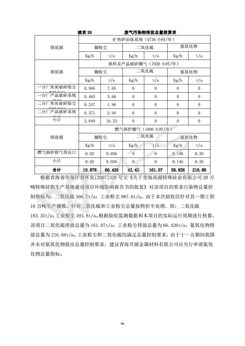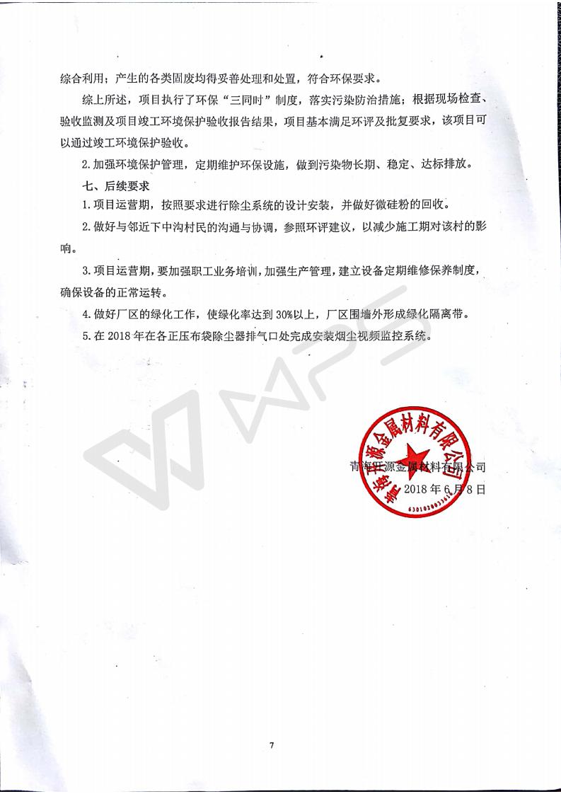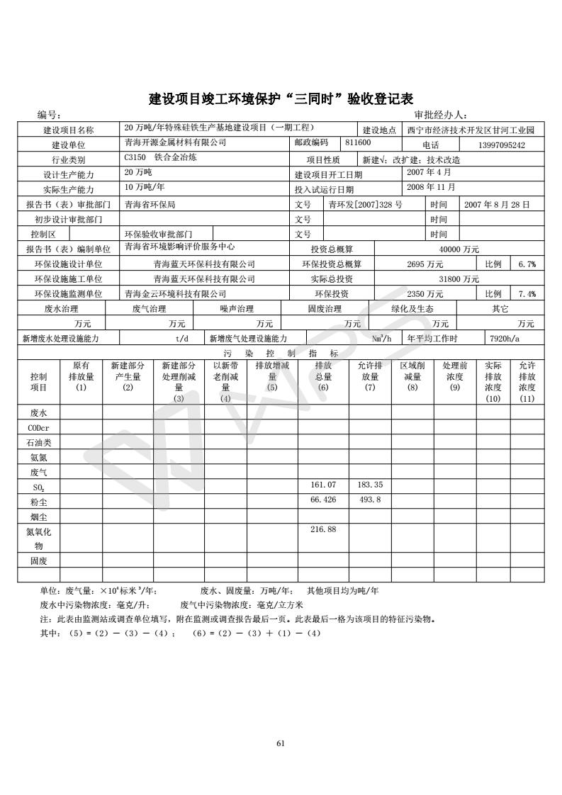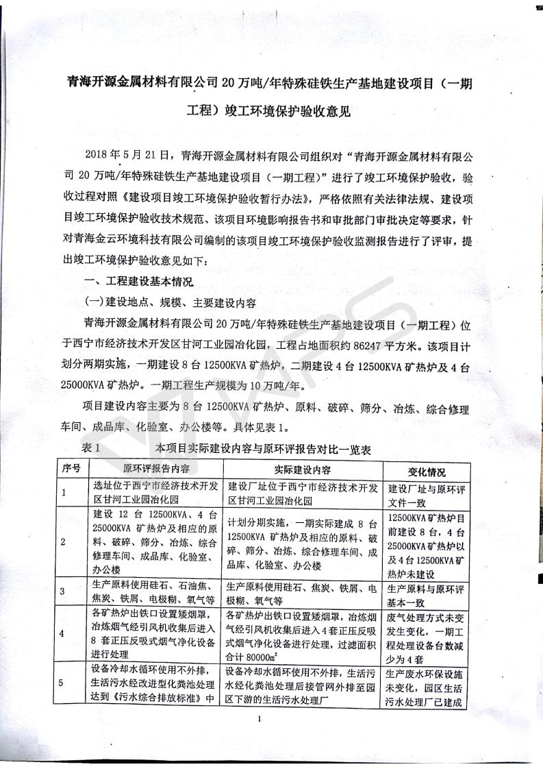 青海開源金屬材料有限公司20萬噸特殊硅鐵生產(chǎn)基地建設(shè)項(xiàng)目(一期工程)竣工環(huán)境保護(hù)驗(yàn)收報告書會后修改20180521