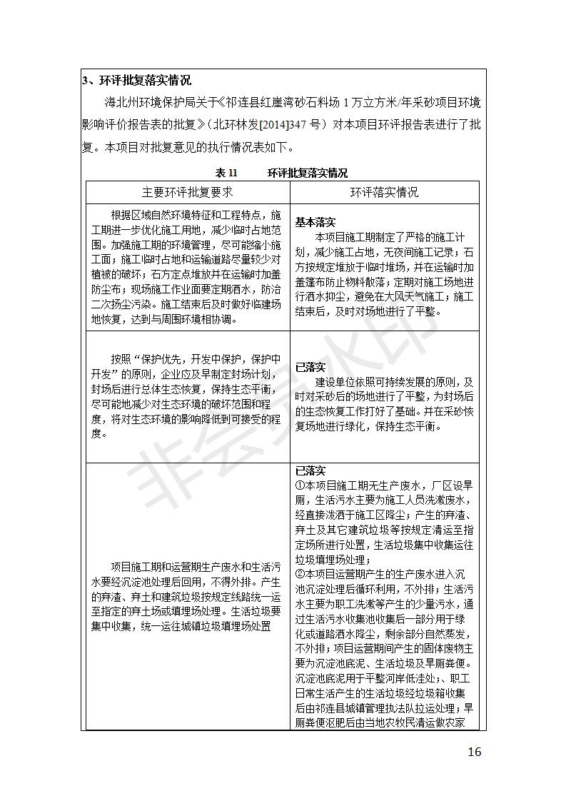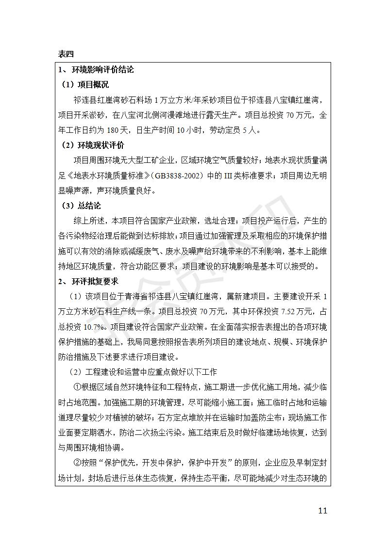 祁連縣紅崖灣砂石料場1萬立方米/年采砂項目竣工環(huán)境保護(hù)驗收監(jiān)測報告表公示