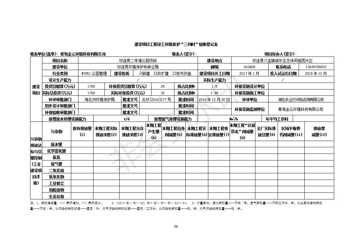 祁連縣二寺灘公園項(xiàng)目竣工環(huán)境保護(hù)驗(yàn)收調(diào)查表公示