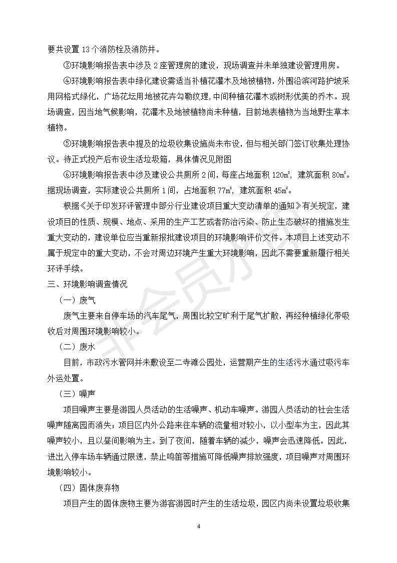根據(jù)中華人民共和國(guó)務(wù)院令第682號(hào)《國(guó)務(wù)院關(guān)于修改〈建設(shè)項(xiàng)目環(huán)境保護(hù)管理?xiàng)l例〉的決定》和《建設(shè)項(xiàng)目竣工環(huán)境保護(hù)驗(yàn)收暫行辦法》(國(guó)務(wù)院令682號(hào)),祁連縣二寺灘公園項(xiàng)目竣工環(huán)境保護(hù)驗(yàn)收內(nèi)容(包括竣工環(huán)境保護(hù)驗(yàn)收調(diào)查表和驗(yàn)收意見(jiàn))公示如下。 一、項(xiàng)目名稱:祁連縣二寺灘公園項(xiàng)目竣工環(huán)境保護(hù)驗(yàn)收調(diào)查表 二、地點(diǎn):祁連縣八寶鎮(zhèn)城東生態(tài)組團(tuán)片區(qū) 三、建設(shè)單位:祁連縣環(huán)境保護(hù)和林業(yè)局 四、建設(shè)內(nèi)容:公園廣場(chǎng)入口、水景景觀、輔助工程、綠化建設(shè) 五、公示時(shí)間:二〇一九年三月十一日至二〇一九年四月八日 六、聯(lián)系人:張工 公示期間,對(duì)上述公示內(nèi)容如有異議,請(qǐng)以書(shū)面形式反饋,個(gè)人須署真實(shí)姓名,單位須加蓋公章。