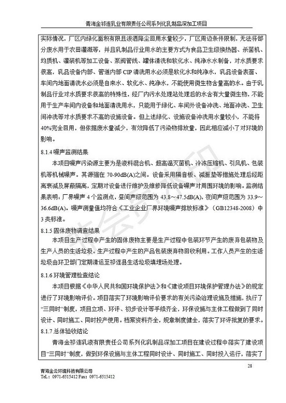 青海金祁連乳業(yè)有限責(zé)任公司系列化乳制品深加工項(xiàng)目竣工環(huán)境保護(hù)驗(yàn)收監(jiān)測報(bào)告表公示發(fā)布日期:(2019-7-10) 點(diǎn)擊次數(shù):2307 |