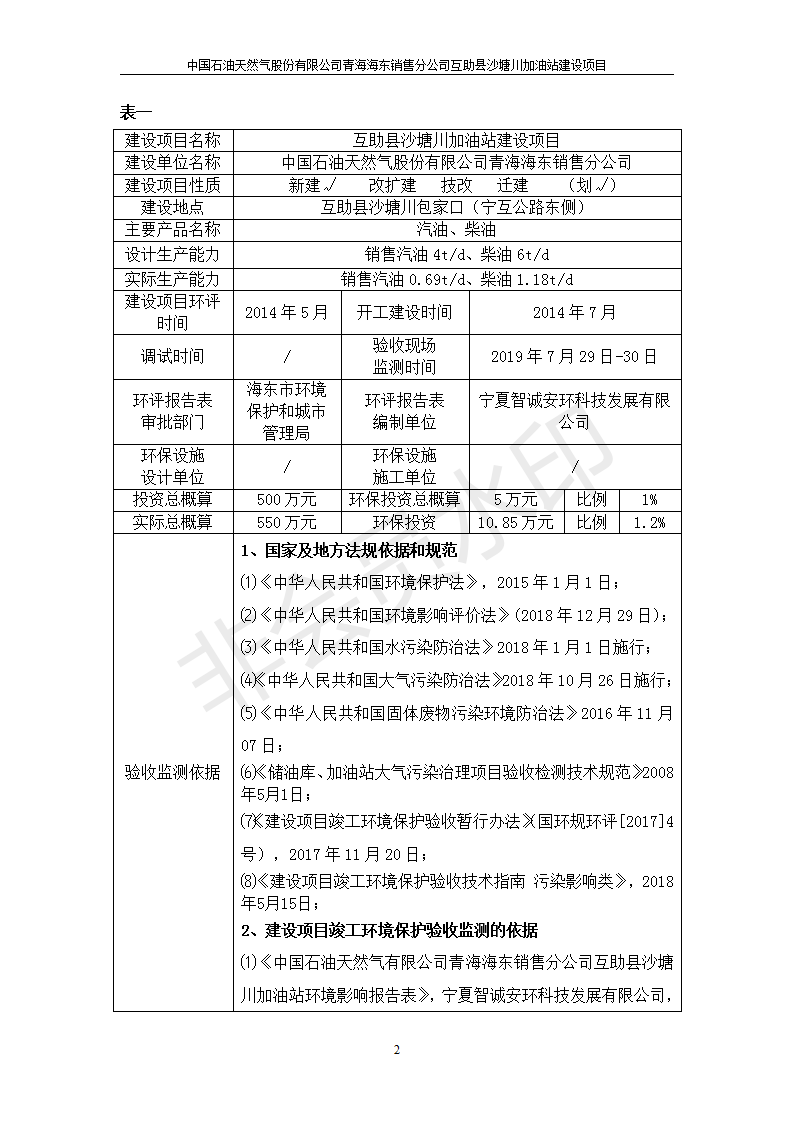 互助縣沙塘川加油站建設(shè)項(xiàng)目竣工環(huán)境保護(hù)驗(yàn)收監(jiān)測報(bào)告表發(fā)布日期:(2019-9-27) 點(diǎn)擊次數(shù):2250 |