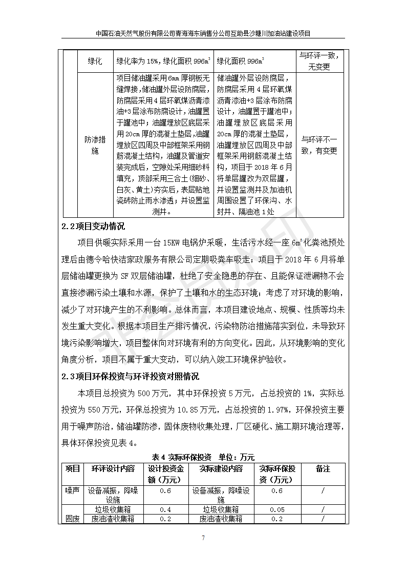 根據(jù)中華人民共和國國務(wù)院令第682號(hào)《國務(wù)院關(guān)于修改〈建設(shè)項(xiàng)目環(huán)境保護(hù)管理?xiàng)l例〉的決定》和《建設(shè)項(xiàng)目竣工環(huán)境保護(hù)驗(yàn)收暫行辦法》(國務(wù)院令682號(hào)),互助縣沙塘川加油站建設(shè)項(xiàng)目(包括竣工環(huán)境保護(hù)驗(yàn)收監(jiān)測報(bào)告表和驗(yàn)收意見)公示如下。 一、項(xiàng)目名稱:互助縣沙塘川加油站建設(shè)項(xiàng)目 二、地點(diǎn):互助縣塘川鎮(zhèn)包家口村 六、聯(lián)系電話:0971-6515411 七、公示時(shí)間:二〇一九年九月二十七日至二〇一九年十月二十九日 公示期間,對(duì)上述公示內(nèi)容如有異議,請(qǐng)以書面形式反饋,個(gè)人須署真實(shí)姓名,單位須加蓋公章。