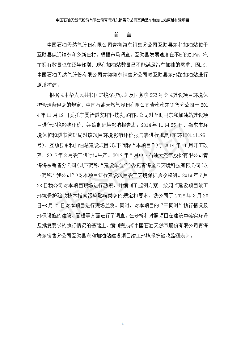 根據(jù)中華人民共和國國務院令第682號《國務院關于修改〈建設項目環(huán)境保護管理條例〉的決定》和《建設項目竣工環(huán)境保護驗收暫行辦法》(國務院令682號),互助縣東和加油站原址擴建項目(包括竣工環(huán)境保護驗收監(jiān)測報告表和驗收意見)公示如下。 一、項目名稱:互助縣東和加油站原址擴建項目 二、地點:互助縣威遠鎮(zhèn)東和鄉(xiāng)新莊村 六、聯(lián)系電話:0971-6515411 七、公示時間:二〇一九年九月二十七日至二〇一九年十月二十九日 公示期間,對上述公示內容如有異議,請以書面形式反饋,個人須署真實姓名,單位須加蓋公章。