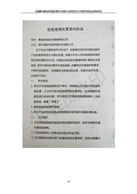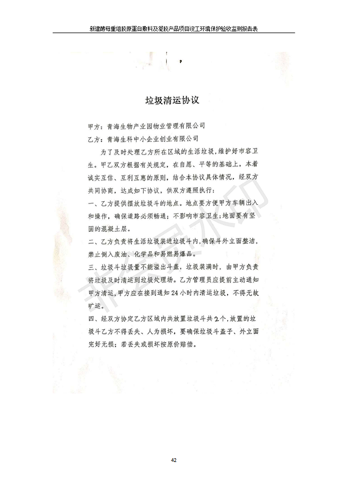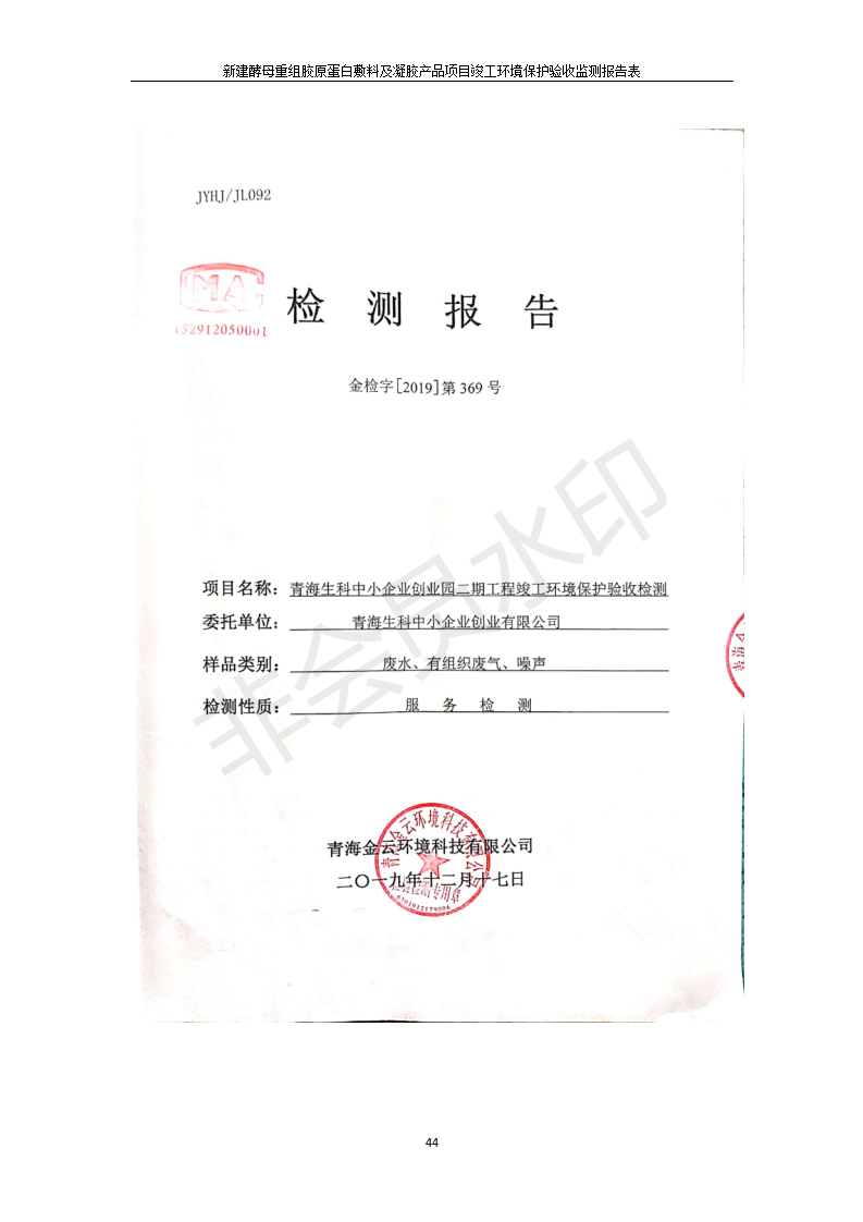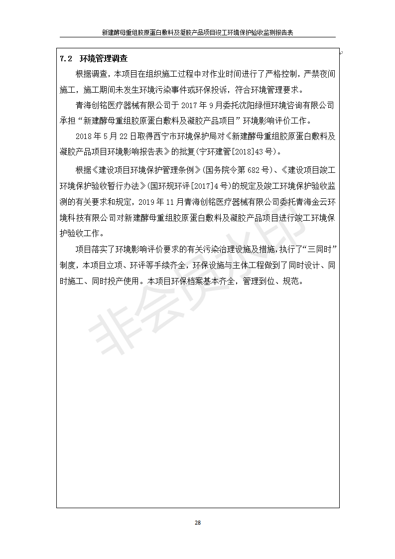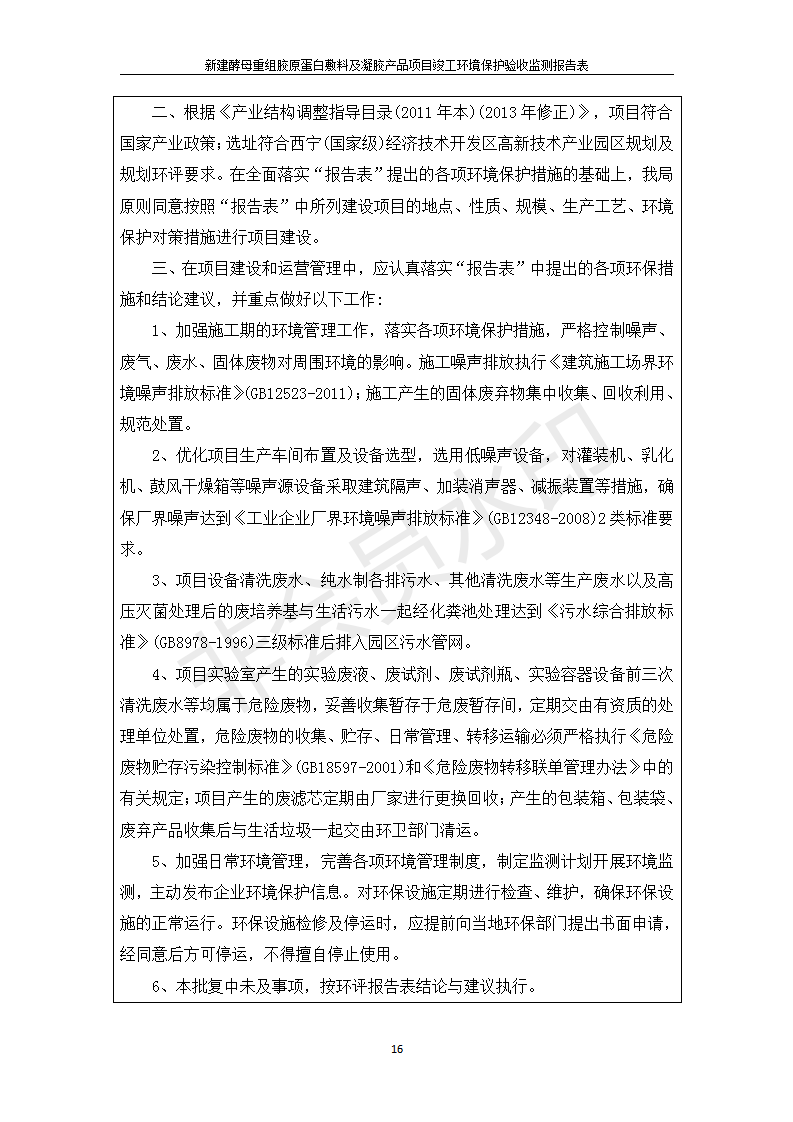 根據(jù)中華人民共和國國務(wù)院令第682號《國務(wù)院關(guān)于修改〈建設(shè)項(xiàng)目環(huán)境保護(hù)管理?xiàng)l例〉的決定》和《建設(shè)項(xiàng)目竣工環(huán)境保護(hù)驗(yàn)收暫行辦法》(國務(wù)院令682號),新建酵母重組膠原蛋白敷料及凝膠產(chǎn)品項(xiàng)目(包括竣工環(huán)境保護(hù)驗(yàn)收監(jiān)測報(bào)告表和驗(yàn)收意見)公示如下。 一、項(xiàng)目名稱:新建酵母重組膠原蛋白敷料及凝膠產(chǎn)品項(xiàng)目 二、地點(diǎn):西寧市生物園區(qū)經(jīng)四路26號15號樓2層 五、聯(lián)系人:董繼風(fēng) 六、聯(lián)系電話:18606125050 七、公示時(shí)間:二〇二〇年一月十三日至二〇二〇年二月十二日 公示期間,對上述公示內(nèi)容如有異議,請以書面形式反饋,個(gè)人須署真實(shí)姓名,單位須加蓋公章。