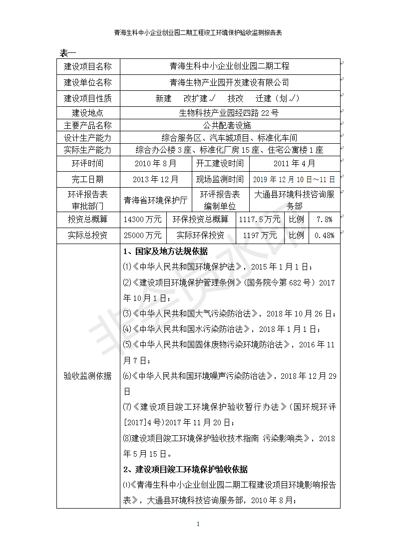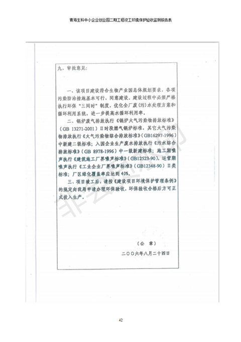 據(jù)中華人民共和國國務(wù)院令第682號《國務(wù)院關(guān)于修改〈建設(shè)項目環(huán)境保護管理條例〉的決定》和《建設(shè)項目竣工環(huán)境保護驗收暫行辦法》(國務(wù)院令682號),青海生科中小企業(yè)創(chuàng)業(yè)園二期工程建設(shè)項目(包括竣工環(huán)境保護驗收監(jiān)測報告表和驗收意見)公示如下。 一、項目名稱:青海生科中小企業(yè)創(chuàng)業(yè)園二期工程建設(shè)項目 二、地點:西寧市生物園區(qū)經(jīng)四路26號 五、聯(lián)系人:張憲周 六、聯(lián)系電話:13997290897 七、公示時間:二〇二〇年二月三日至二〇二〇年二月二十八日 公示期間,對上述公示內(nèi)容如有異議,請以書面形式反饋,個人須署真實姓名,單位須加蓋公章。