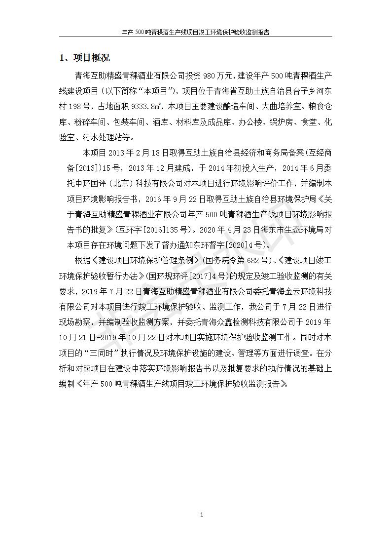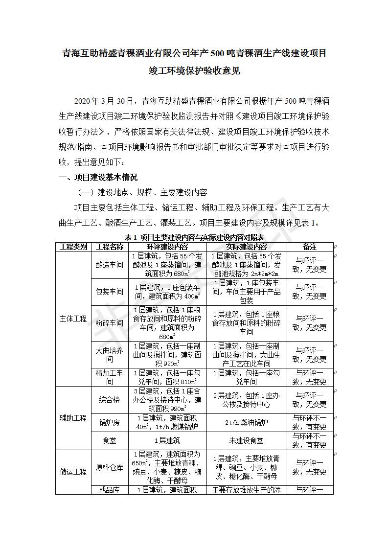 根據(jù)中華人民共和國國務(wù)院令第682號《國務(wù)院關(guān)于修改〈建設(shè)項(xiàng)目環(huán)境保護(hù)管理?xiàng)l例〉的決定》和《建設(shè)項(xiàng)目竣工環(huán)境保護(hù)驗(yàn)收暫行辦法》(國務(wù)院令682號),綜合檢測實(shí)驗(yàn)室建設(shè)項(xiàng)目(包括竣工環(huán)境保護(hù)驗(yàn)收監(jiān)測報(bào)告表和驗(yàn)收意見)公示如下。 一、項(xiàng)目名稱:青海互助精盛青稞酒業(yè)有限公司年產(chǎn)500噸青稞酒業(yè)生產(chǎn)線建設(shè)項(xiàng)目 二、地點(diǎn):青海省海東市互助土族自治縣臺子鄉(xiāng)河?xùn)|村198號