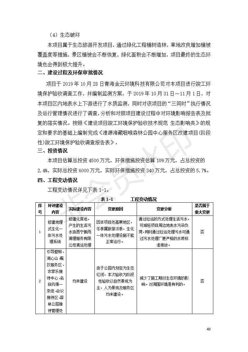 湟源海藏咽喉森林公園中心服務(wù)區(qū)改建項(xiàng)目(階段性)竣工環(huán)境保護(hù)驗(yàn)收調(diào)查表發(fā)布日期:(2020-4-29) 點(diǎn)擊次數(shù):3123 |