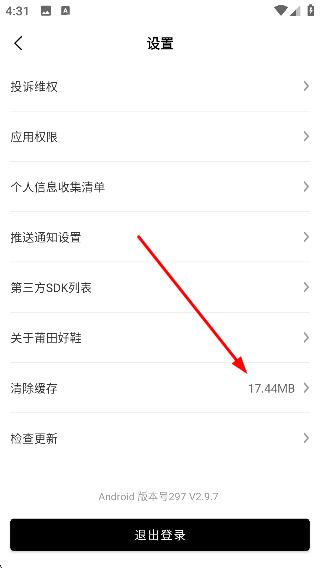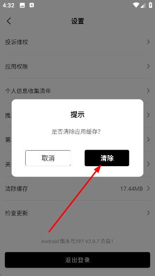 3、在設(shè)置頁面點擊【清除緩存】,觸發(fā)清除確認彈窗。