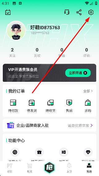 2、在個人中心界面點擊右上角設(shè)置按鈕,進入設(shè)置頁面。