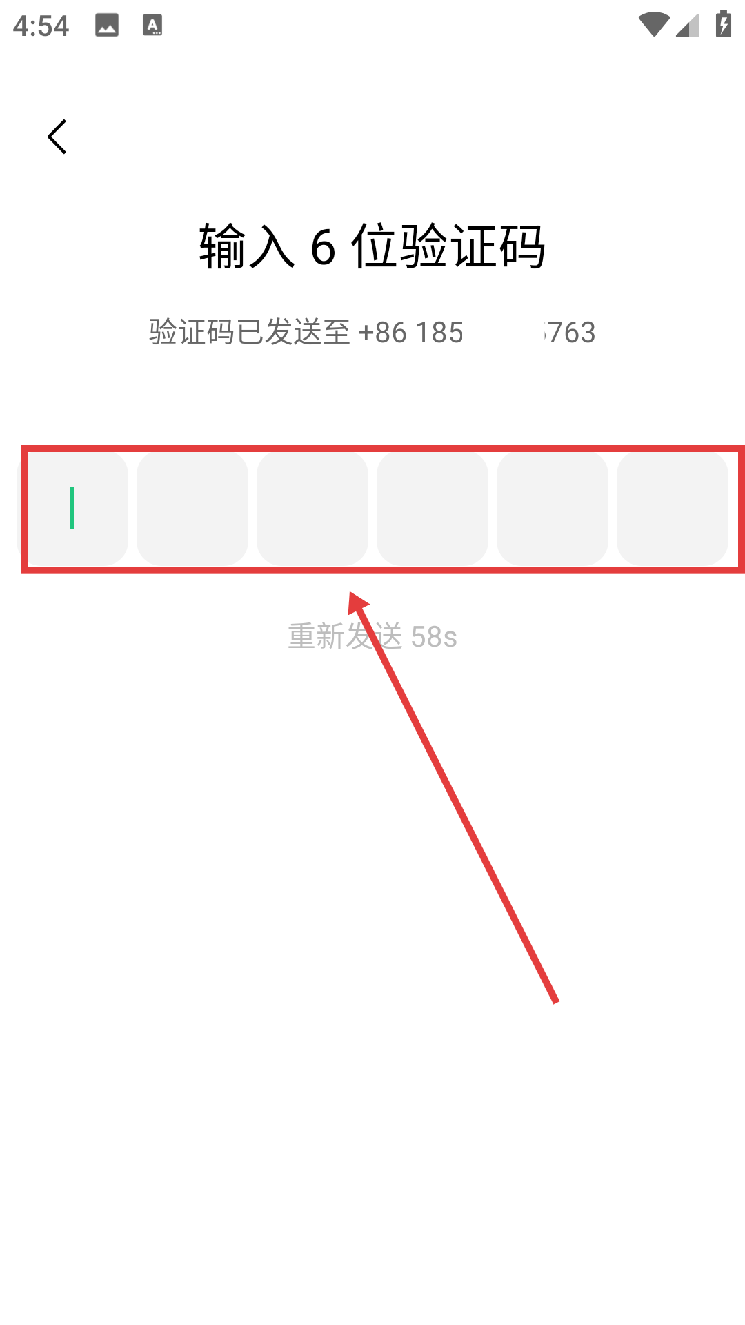 4、在輸入驗證碼界面輸入收到的6位驗證碼,完成登錄流程。