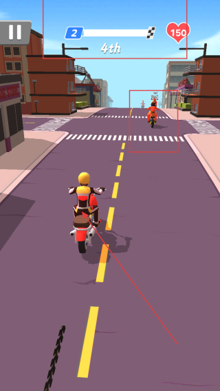 2、游戲中操控摩托車超越其他選手,留意排名變化,在城市道路中靈活行駛,提升競速名次。